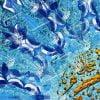 The artworks are then printed using genuine Japanese large format printers with ecofriendly nontoxic inks. The printing process we use fuses the inks deep into the fibers of the fabric, so the designs won’t peel away or scratch off easily.