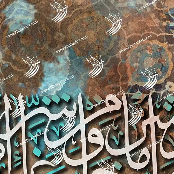 “An absolutely beautiful blend between modern designs and patterns, combined with some traditional Arabic calligraphy. Making this artwork a must have for your home or office. It is also a perfect gift for your friends for their new home or even for their wedding.
